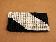 This bracelet features a bold black-and-white pattern that blends traditional beadwork with a contemporary look. The glossy surface gives it a polished, refined appearance, while the monochrome palette makes it timeless and easy to combine with any outfit. Black represents strength and protection, while white symbolises purity and renewal, together creating a harmony of opposites. Dimensions: 8,5 x 5,5 cm, diameter 5,5 cm, length 17,2 cm.