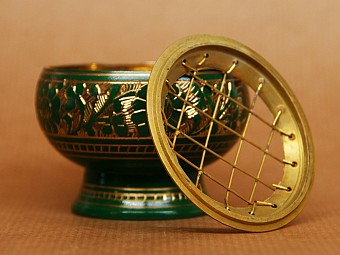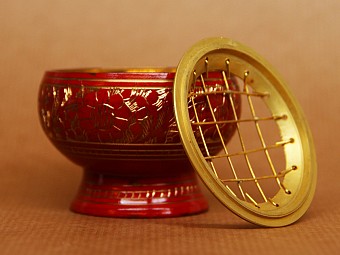 Metal Incense Charcoal Burner in Blue, Red or Green with Gold Trim